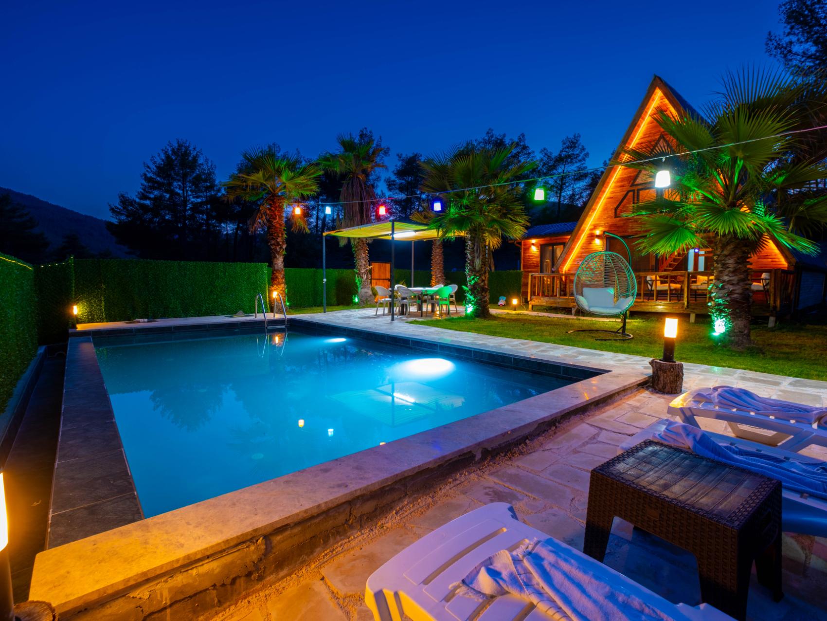 - Korunaklı özel yüzme havuzu