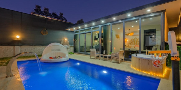 Fethiye’nin huzurlu Çamköy bölgesinde yer alan Villa Crystal Deluxe, modern tasarımı, özel havuzu ve denize yakın konumuyla hem balayı çiftleri hem de küçük tesettürlü aileler tarafından sıkça tercih edilen özel tatil villalarımızdan biridir. Tek yatak odalı yapısı, korunaklı havuzu ve şık dekorasyonuyla 3 kişiye kadar konaklama kapasitesi sunan villa, keyifli ve konforlu bir tatil arayan misafirler için ideal bir seçenektir.