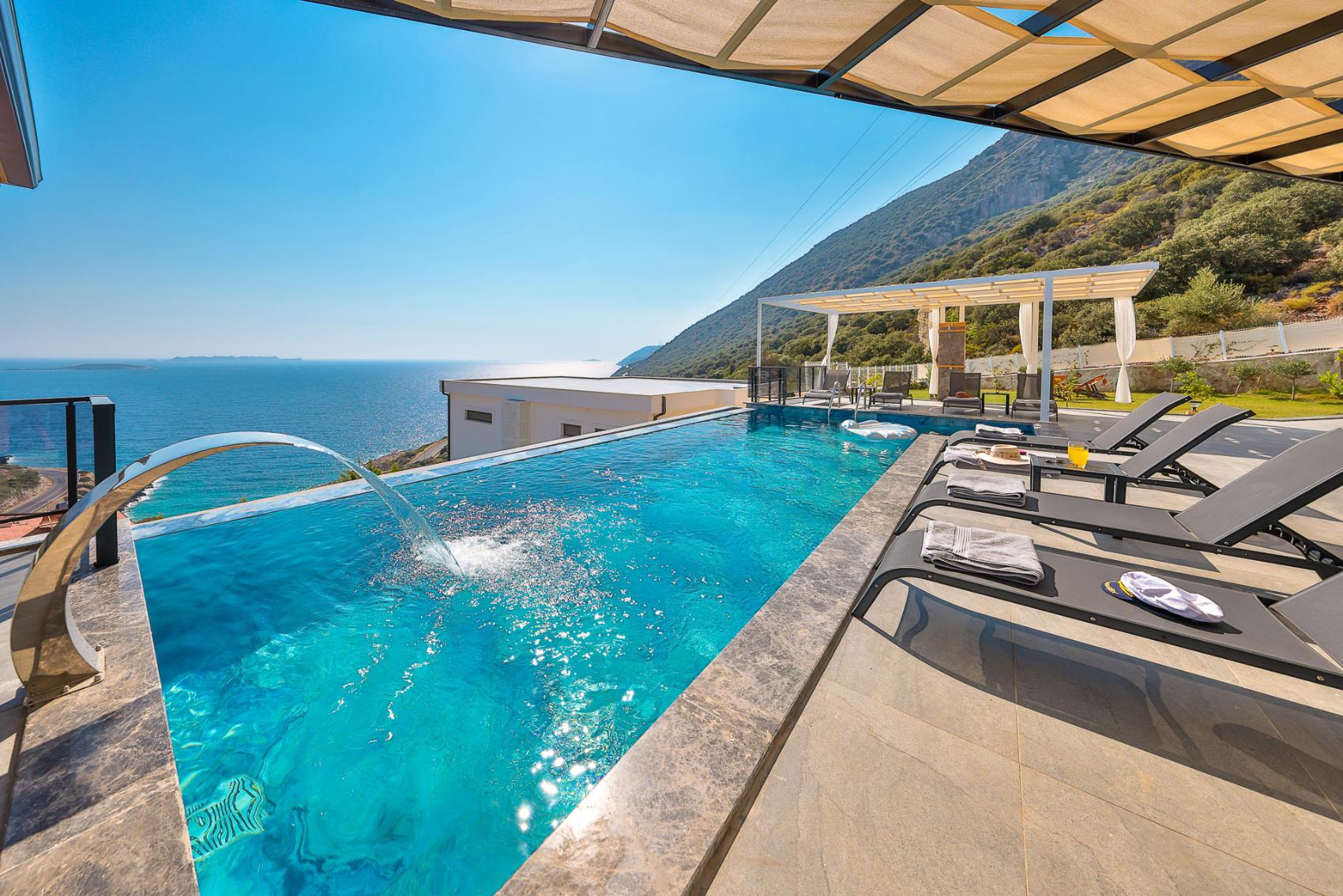🏖️ Sonsuzluk havuzu, Kaş’ın masmavi deniziyle bütünleşerek görsel bir şölen sunar.