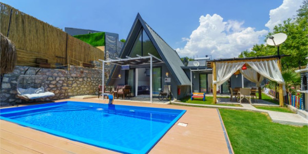 Fethiye, Kargı bölgesinde yer alan Elif Bungalov, doğa ve deniz manzaralı konumu, özel havuzu ve modern tasarımı ile tatil severler için öne çıkan bir bungalov seçeneğidir. 2 yatak odasıyla 4 kişiye kadar konaklama imkânı sunan villa, özellikle tesettürlü aileler ve balayı çiftleri için idealdir. Lüks mobilyaları ve konforlu yaşam alanları ile Elif Bungalov, unutulmaz bir tatil deneyimi yaşatır.